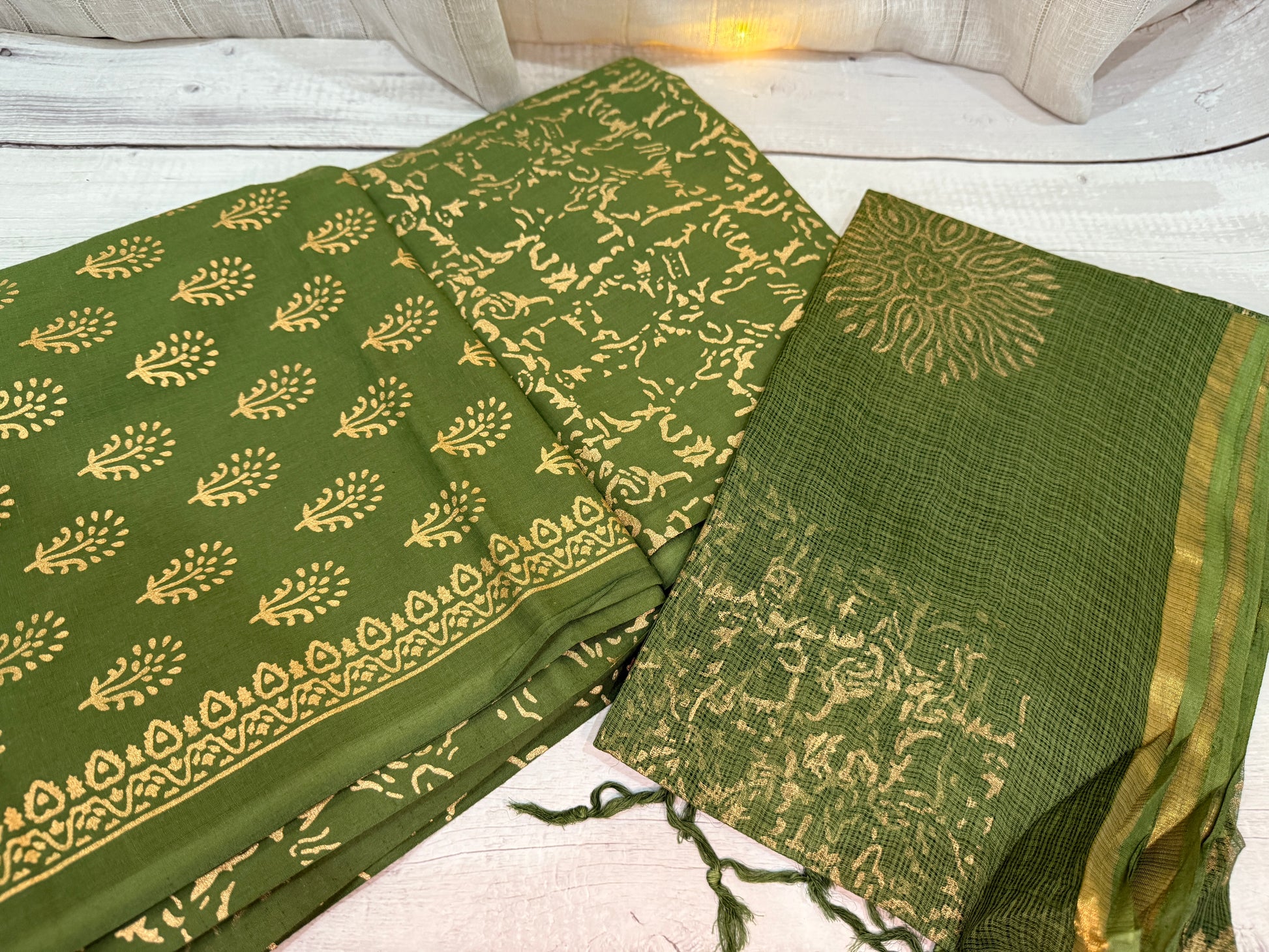 The calming olive green tones evoke a connection to nature, freshness, and tranquility.