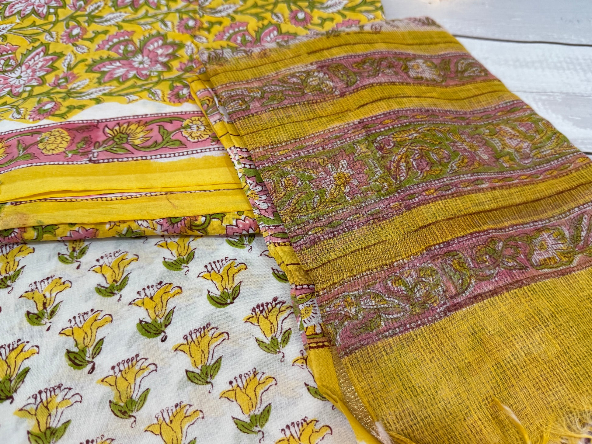 The fusion of yellow, pink, and green highlights both festive energy and artisan detailing, achieving a harmonious, cheerful look.